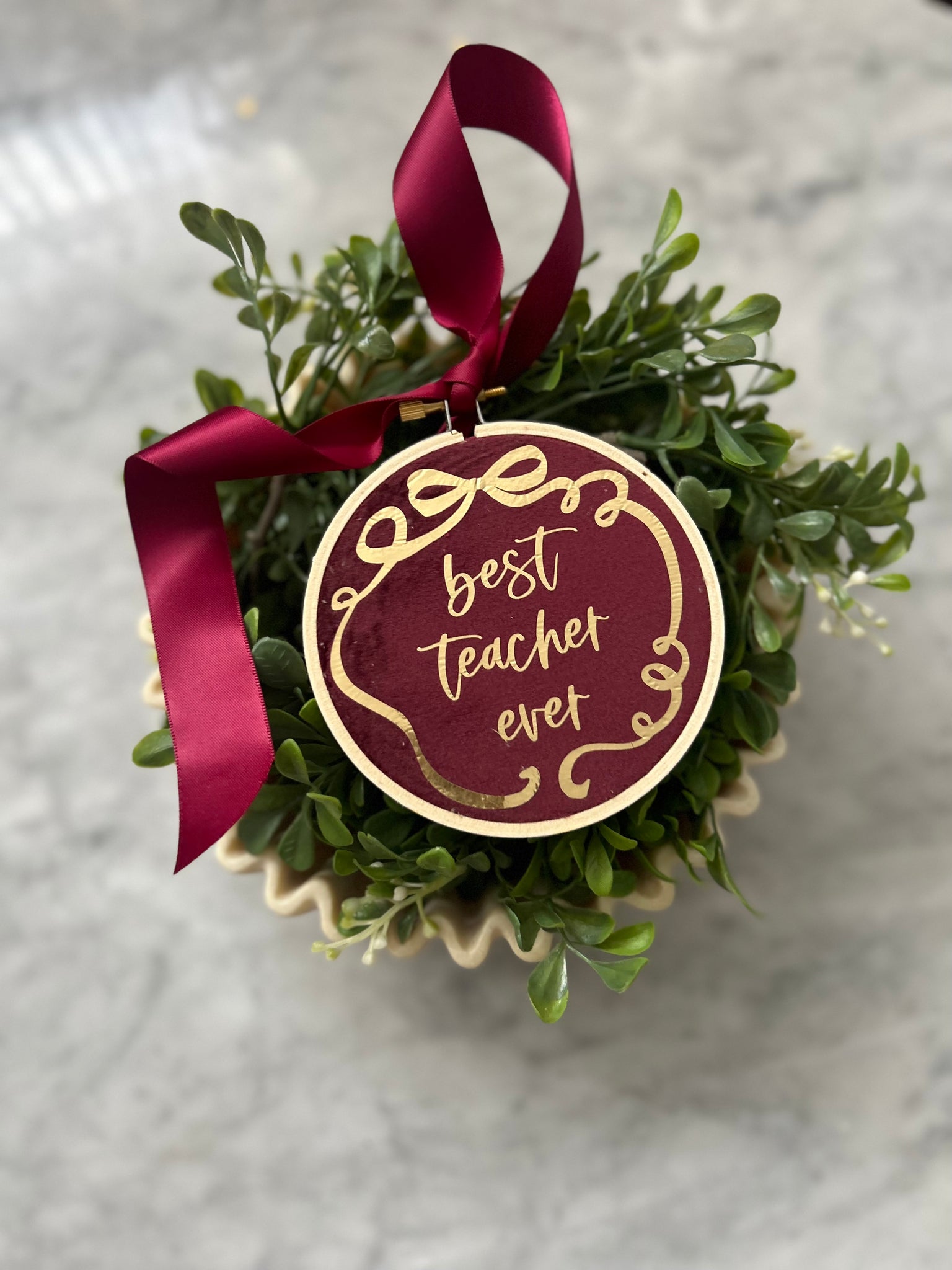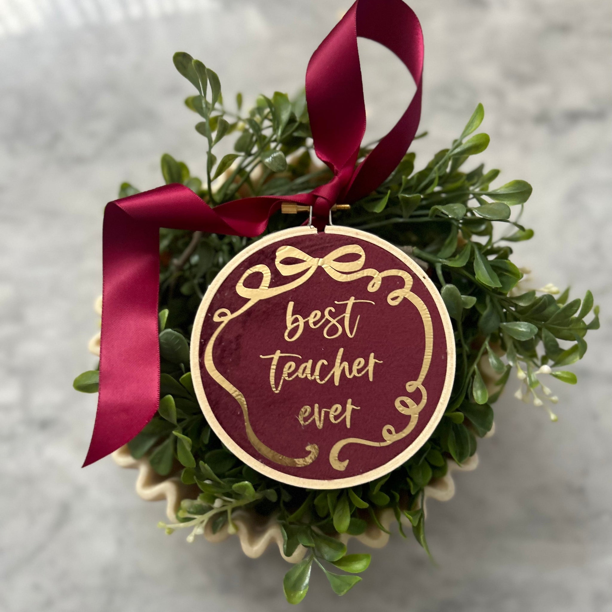 Best Teacher Ever Bow Christmas Heirloom Hoop